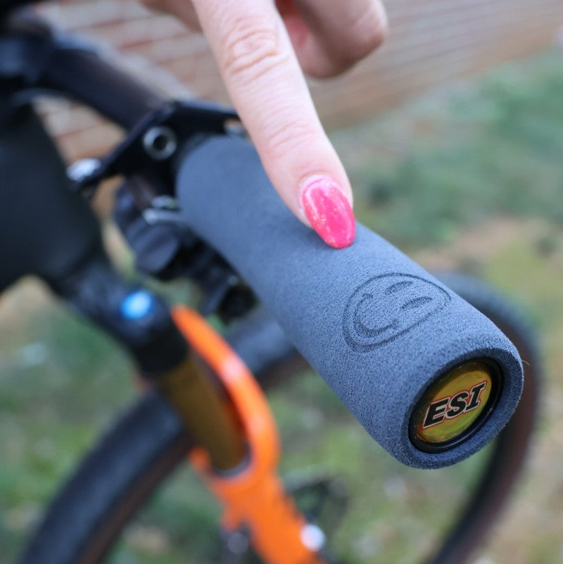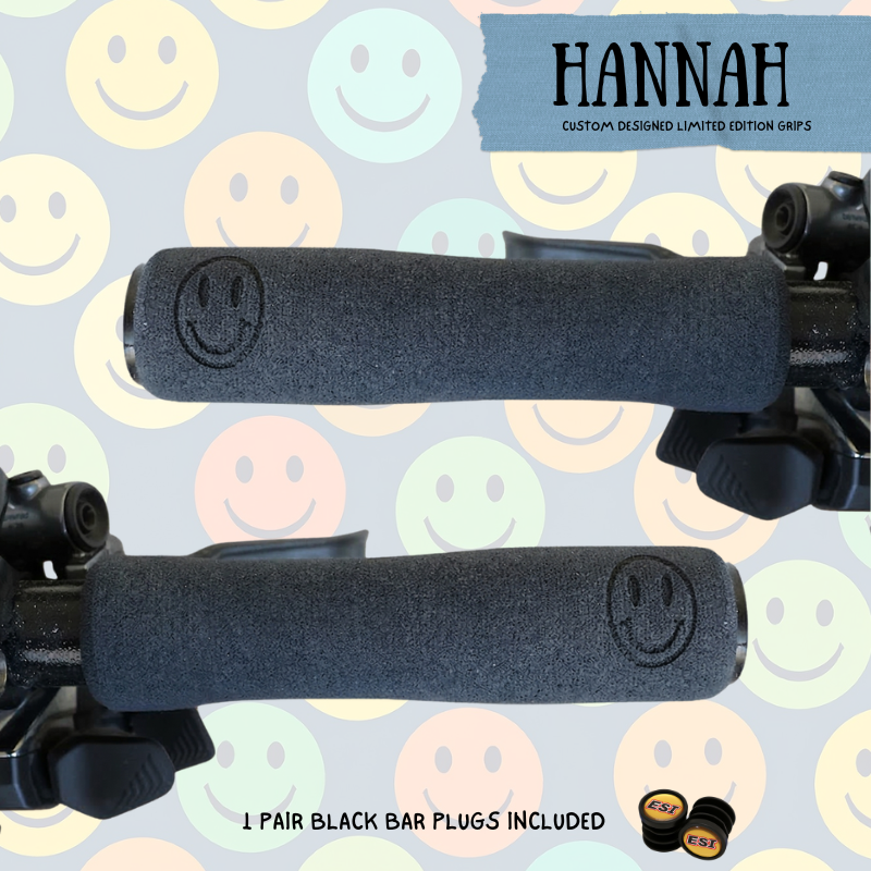 Bring joy to your bars! Custom designed ESI Grips created by athlete Hannah Otto featuring a Smiley Face on the outer edge of your grip to bring a little pop of joy to your ride!